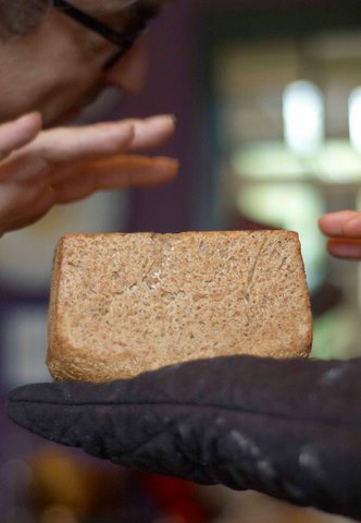 At the home of Virtuousbread.com there was hardly any flour!  Kevin from Stoate’s flour was going to deliver the next day so it was a whole spelt loaf or nothing for the intrepid Nick.  New method.  New flour.  Across the river.  He was several steps out of his comfort zone but boldly decided to go ahead.  Fortified with coffee and some Danish ryewe began with the usual simple recipe, flinging all the ingredients into the trusty kitchenaid.  As Nick always uses a mixer there was little point in kneading by hand.