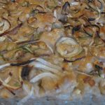 Top it with whatever you want (rosemary and sage and sea salt; onion and garlic and sea salt; sun dried tomato and shallot and sea salt….) and squish it down with your fingers so it looks a bit like a brain. Put it in the oven for 20-25 minutes. If it gets too brown cover the top with foil or non stick baking parchment. Remove and take it out of the pan immediately. Eat that day (it won’t be hard). Remember, at any point you can put the dough in the fridge to slow it down.
